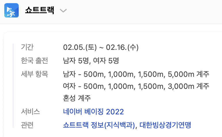 2022 베이징 올림픽 동계올림픽 쇼트트랙 일정 5일은 20:00 쇼트트랙 여자 500m 예선, 20:38 에는 쇼트트랙 남자 1000m 예선이 치뤄졌습니다. 또한 이번 2022 베이징 동계올림픽에서 처음 선보이는 혼성계주 예선과 결선도 함께 치뤄졌습니다. 2022 베이징 동계올림픽 쇼트트랙 여자500m, 쇼트트랙 남자 1000m 예선에 모두 통과한 우리나라의 다음 경기가 너무 기대됩니다.