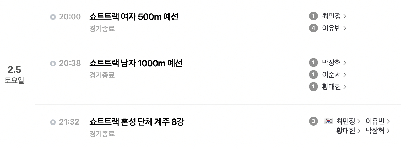 베이징 올림픽 쇼트트랙 일정 다시보기